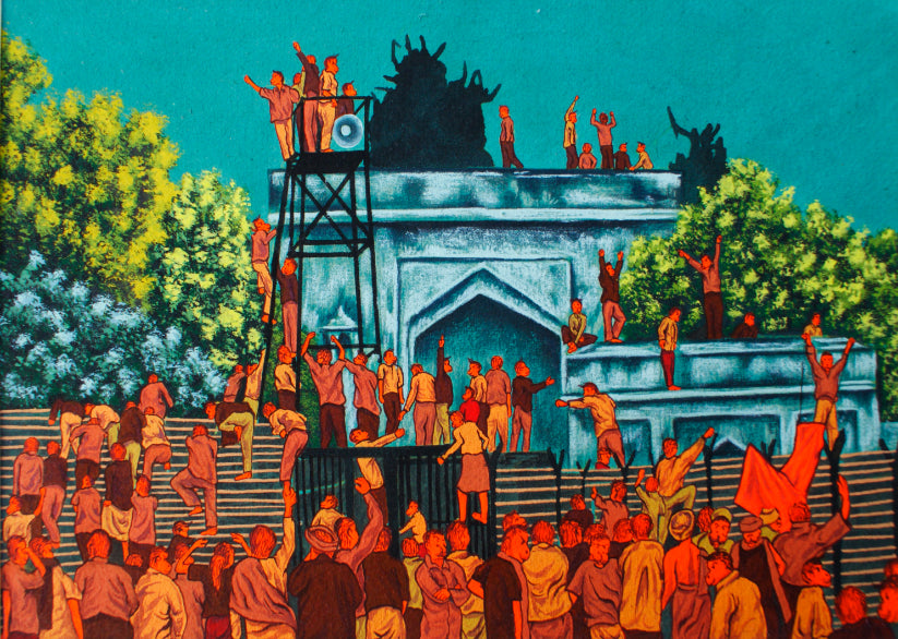 Satyanarayana Gavara (b.1997, Andhra Pradesh) is a printmaker whose woodcut works examine hunger, agrarian struggle, and the resilience of farming communities.