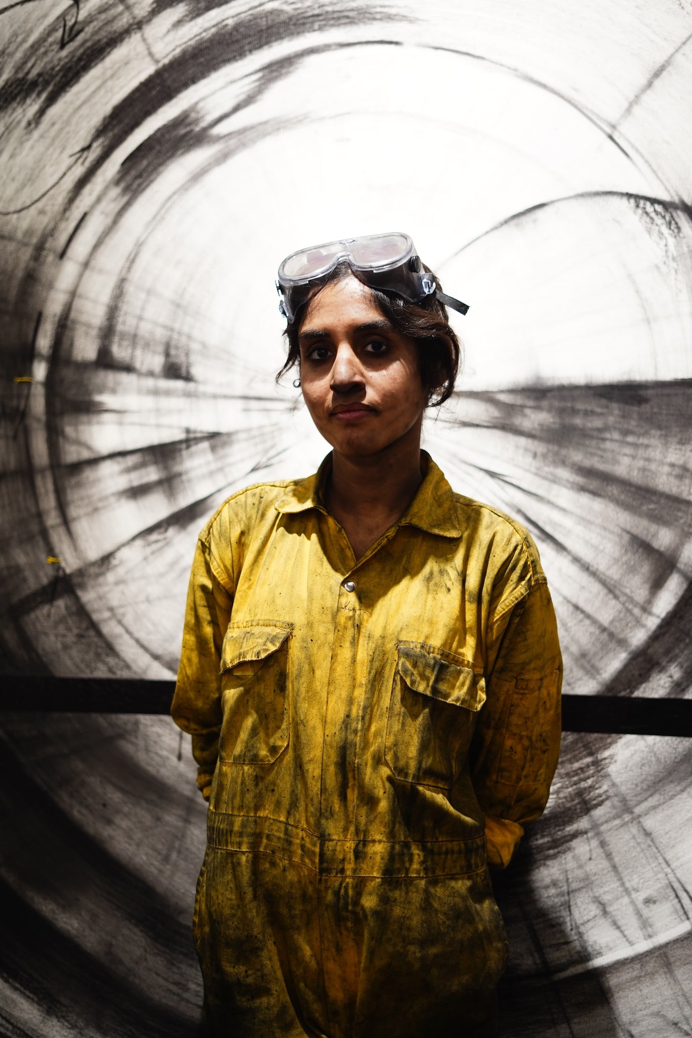 My fascination with industrial machines comes from the time spent in my father’s factory, and reflects in the work I create. I remember watching in wonder of the sounds, the colours, the moving energy, beasts coming alive. The machine and the machine-operating body no longer separate, but an amalgamation of forms that curve in space and move in time. I wish to explore this dynamic flow between the organic and machine.