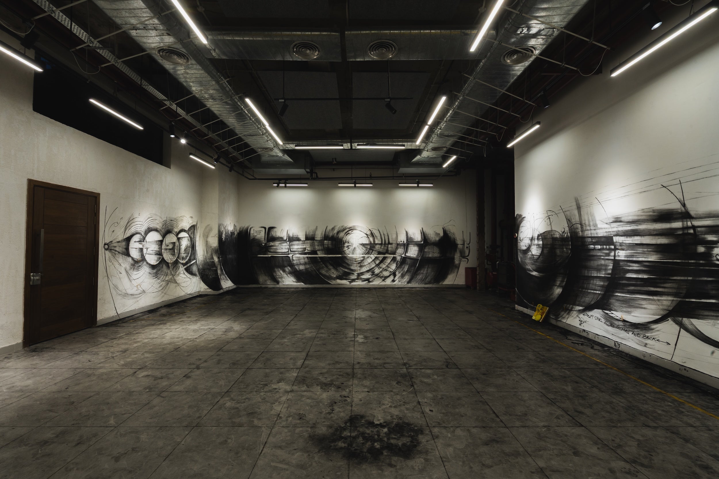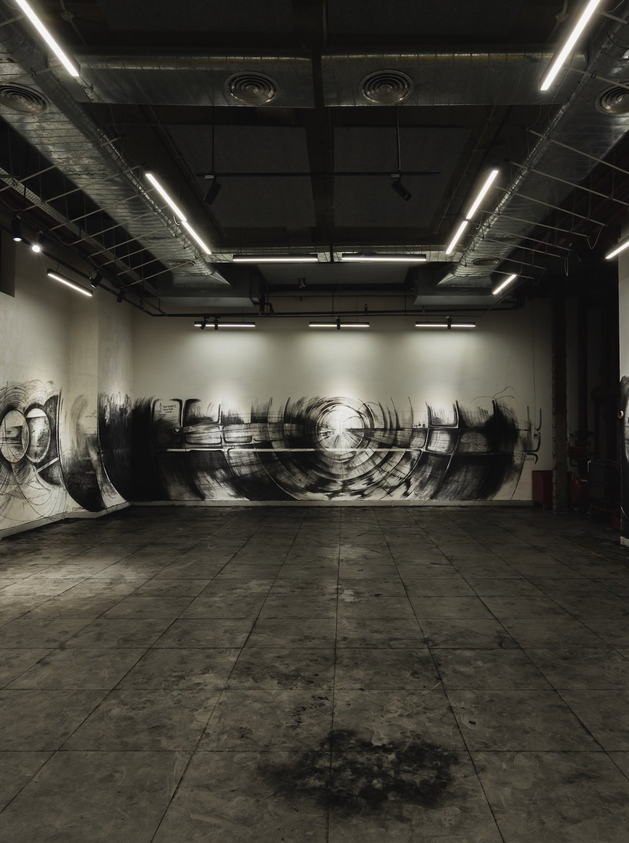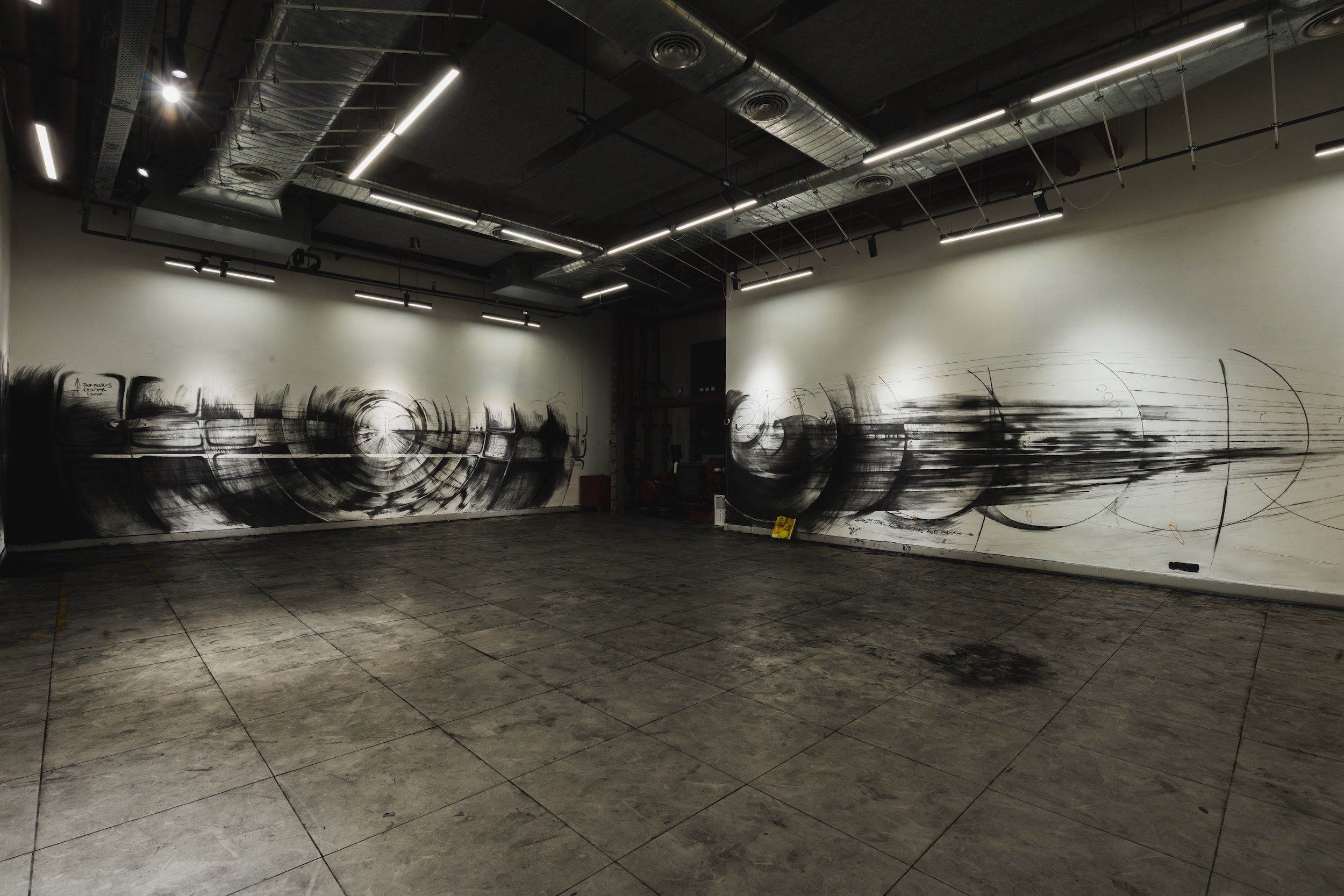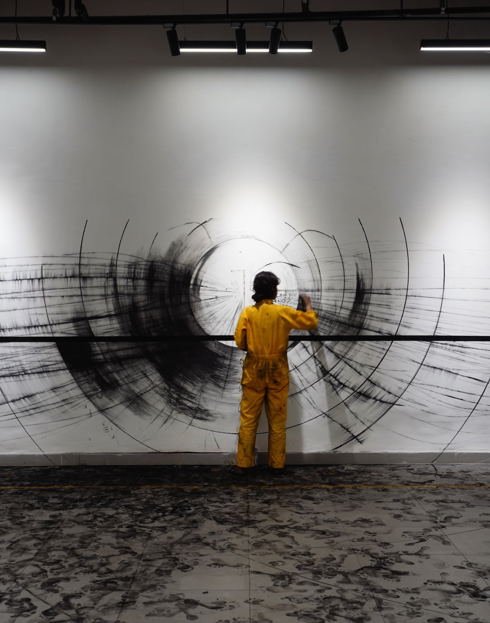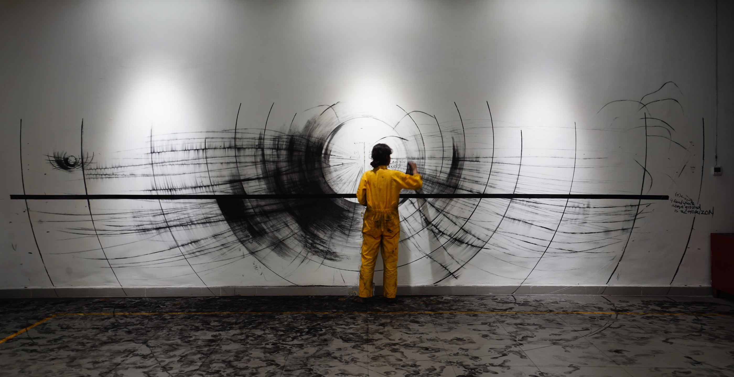 In my practice man is also a machine and organism at the same time. While man can measure and move using the body as a tool, the final shape is more organic than defined. The industrial capacity of the body is examined by exerting the body patterns of movement like a human machine through fatigue. Thus drawing is not a static image but a movement extended in time. It is choreography, measurement, and memory. Through prolonged and continuous action, the body attempts to curve the hard edges of architecture, to inscribe presence onto systems that might otherwise appear impersonal. What remains are fields of interference. Evidence that space has been touched, stretched, and momentarily transformed.