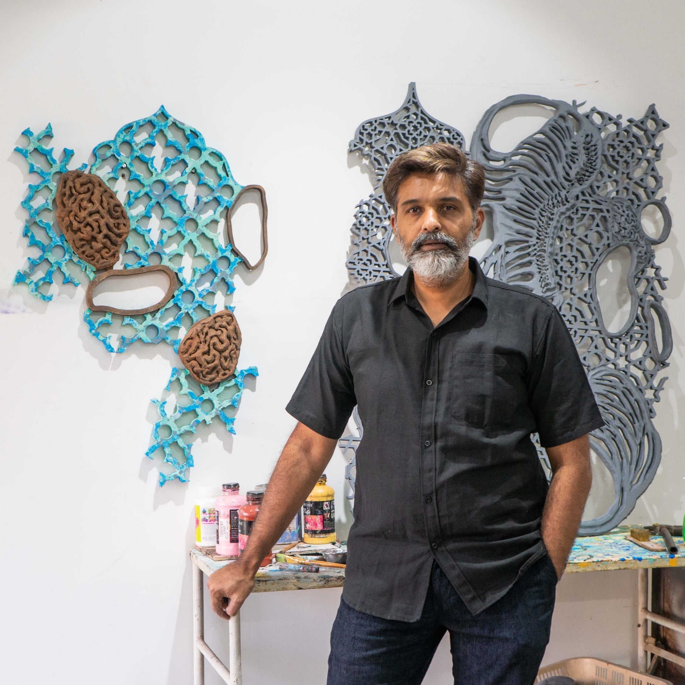 Waghela’s art is shaped by atheism, nihilism, and a scientific approach to reality, questioning perception, truth, and knowledge in a world entangled with ideologies and propaganda. He delves into the unseen forces shaping society, exploring how political and cultural constructs transform individuals. His work challenges established narratives, dissecting human conditioning and the fragile boundaries between reality and illusion.