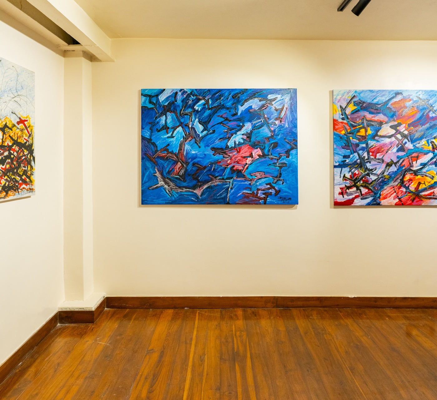 His works have been showcased in the Kochi Biennale and Lalit Kala Akademy.